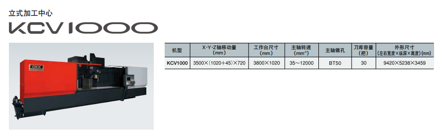 - · KCV1000采用“立柱移動系統”,提高了機器的可達性和性能。